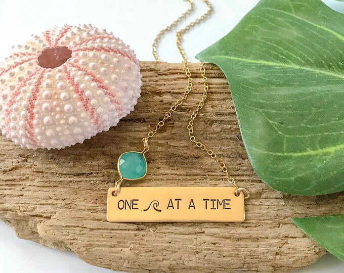 One Wave At A Time Stamped Sterling Silver Bar Necklace